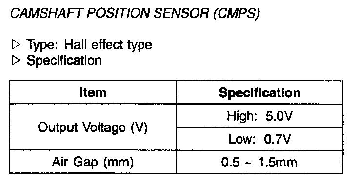Camshaft Position Sensor (CMPS) - Specification: