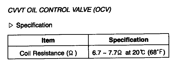 CVVT Oil Control Valve (OCV) - Specification: