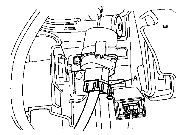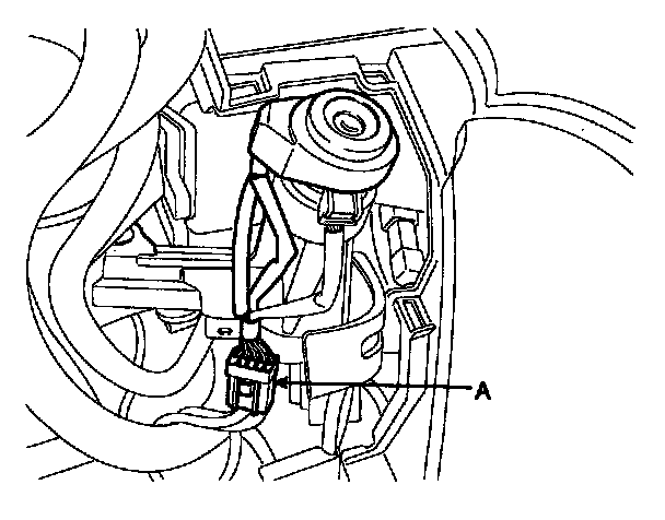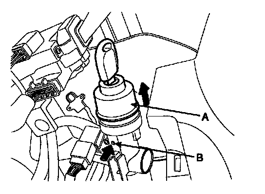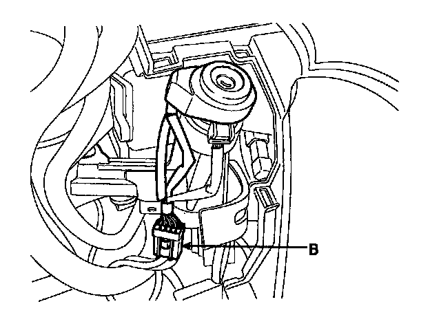 1. Disconnect the ignition switch connector (A) and key warning switch connector (B) from under the steering column.