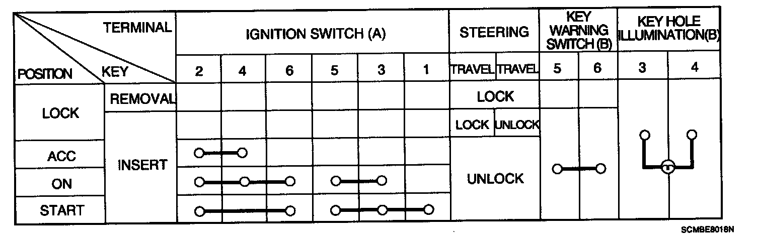 6. If it is necessary to remove the key lock cylinder (A), Remove the key lock cylinder (A) after pushing lock pin (B) with key ACC.