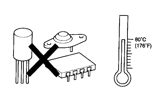 6. The electronic parts used in the computer, relays, etc. are readily damaged by heat. If there is a need for service operations that may cause the temperature to exceed 80 °C (176 °F), remove the electronic parts before hand.
