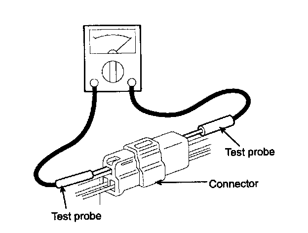11. When using a circuit tester to check continuity or voltage on connector terminals, insert the test probe into the harness side. If the connector is a sealed connector, insert the test probe through the hole in the rubber cap until contacts the terminal, being careful not to damage the insulation of the wires.