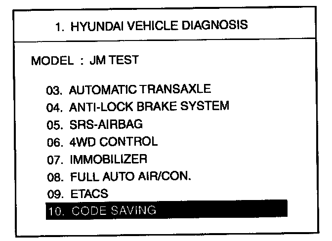 3. After selecting "CODE SAVING" menu, button "ENTER" key, then the screen will be shown as below.