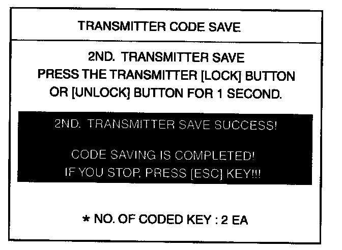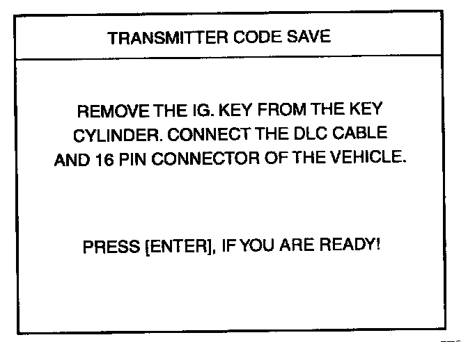 4. After removing the ignition key from key cylinder, push "ENTER" key to proceed to the next mode for code saving.
