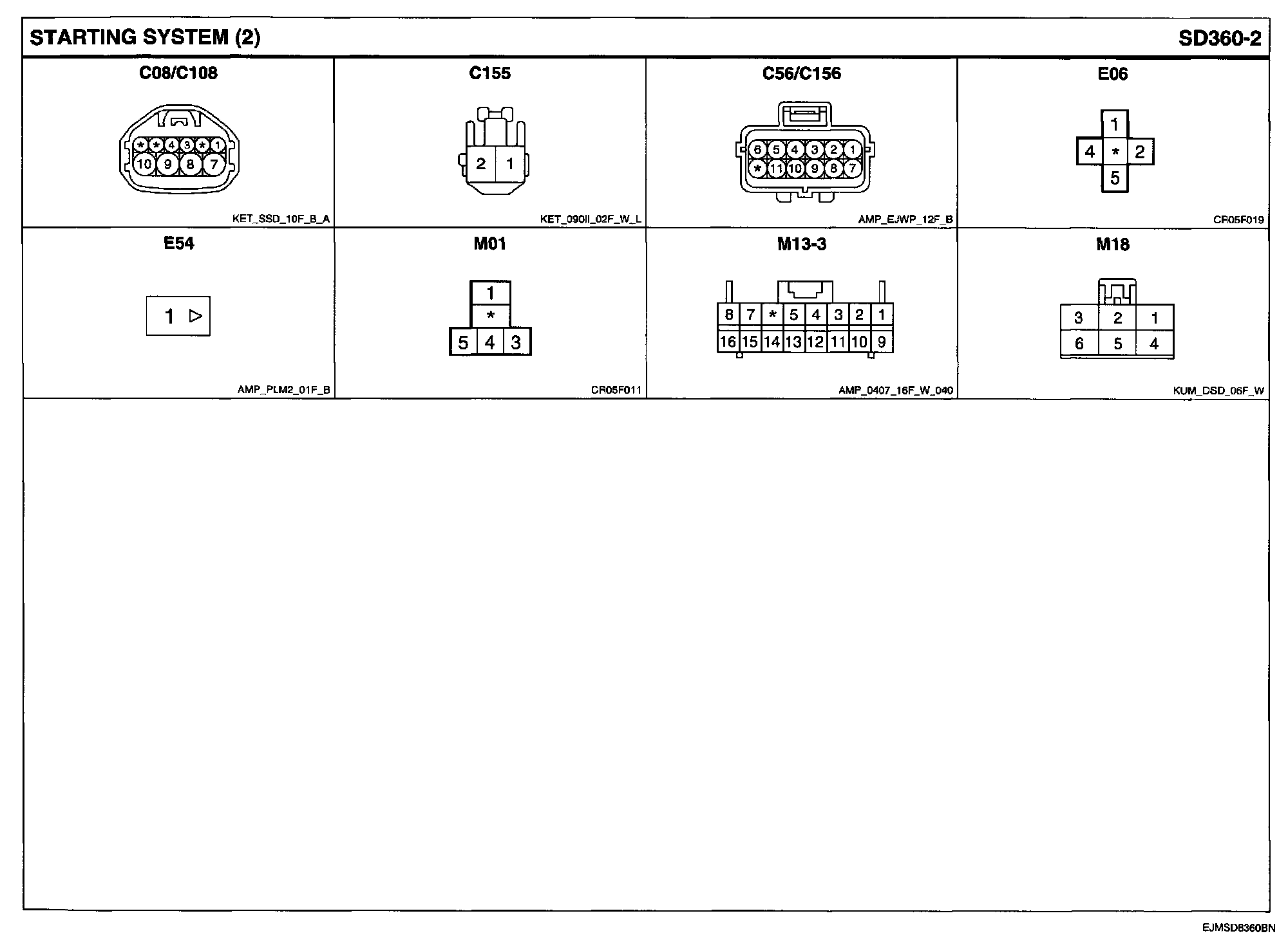Starting System Connector Pin Outs: