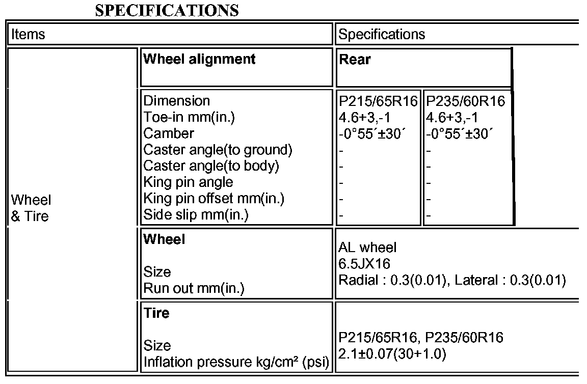 Rear Wheel Alignment Specifications