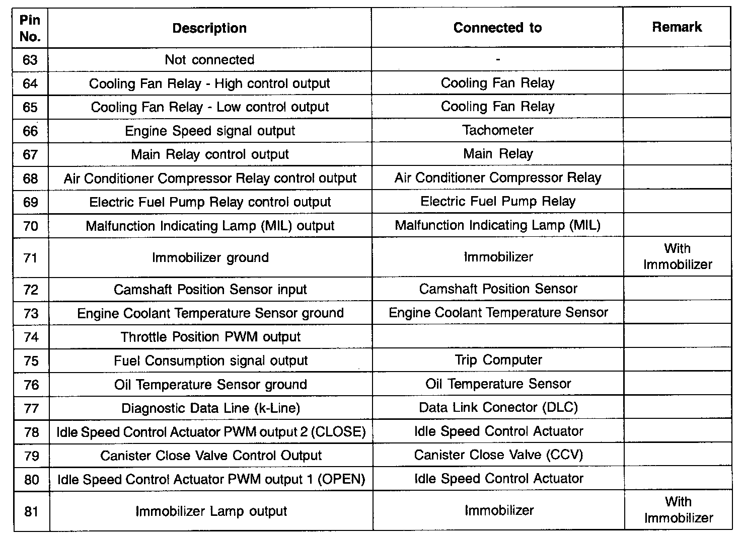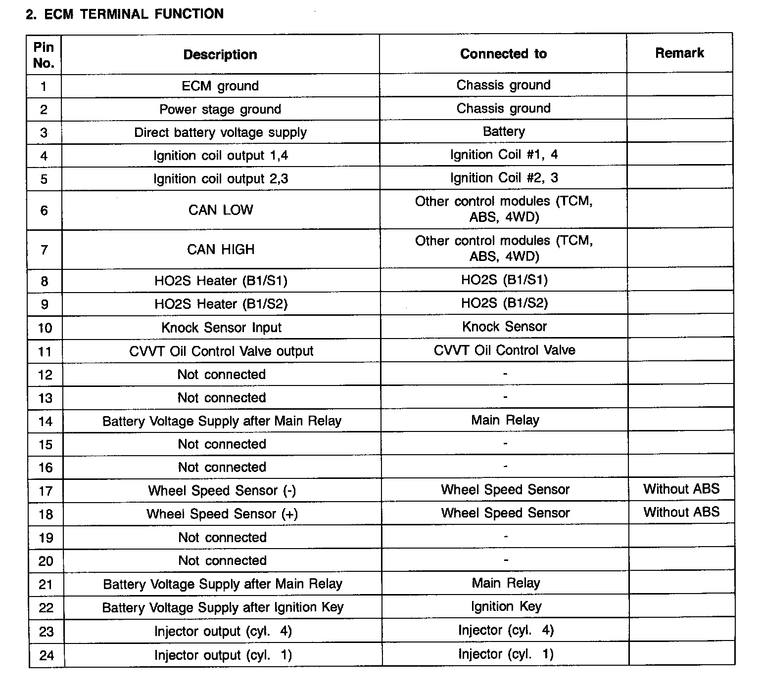 ECM Terminal Input/Output Signal (Part 1):