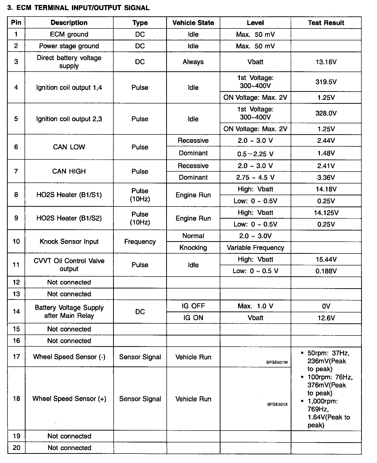 ECM Terminal Input/Output Signal (Part 3):