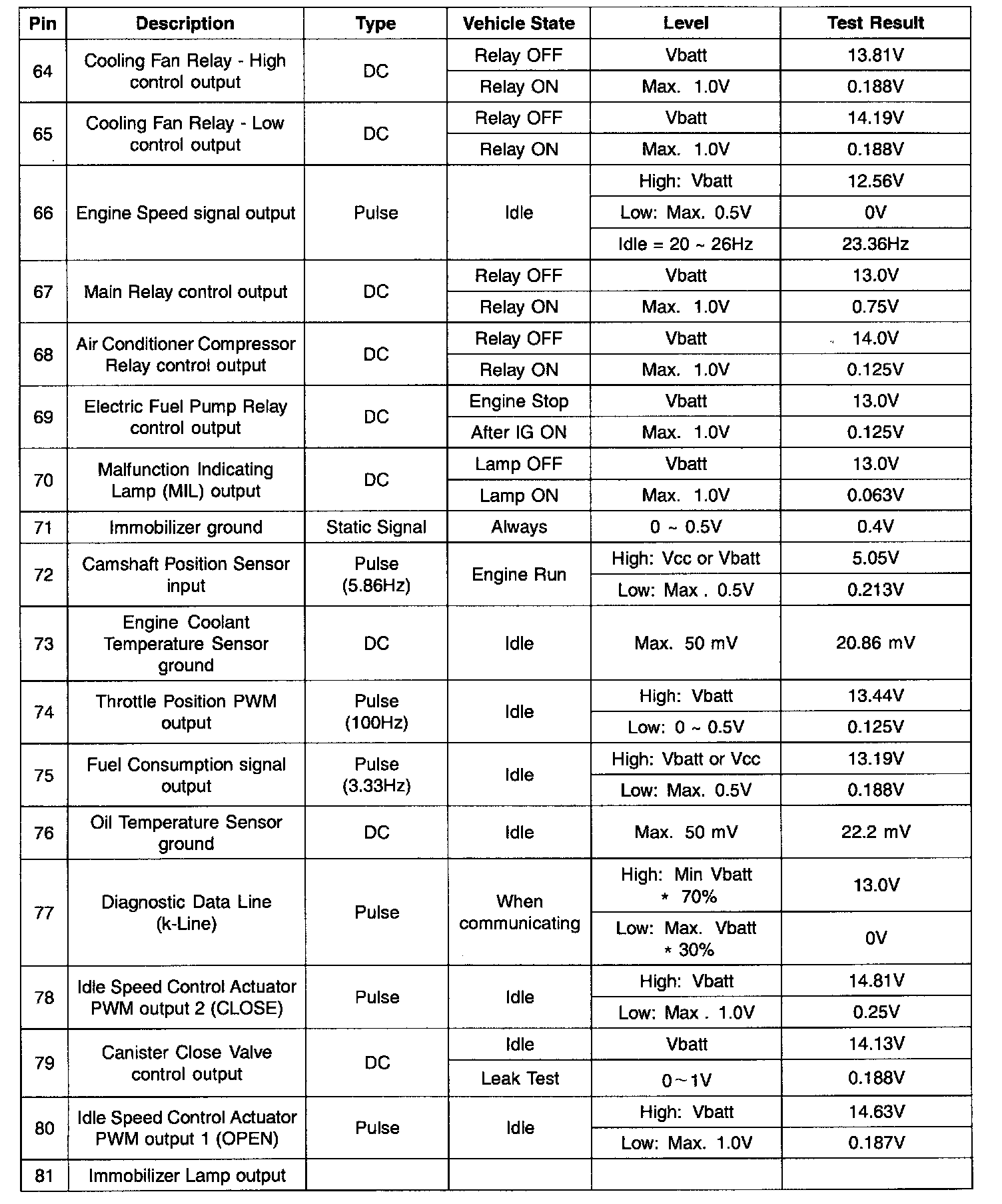 ECM Terminal Input/Output Signal (Part 4):