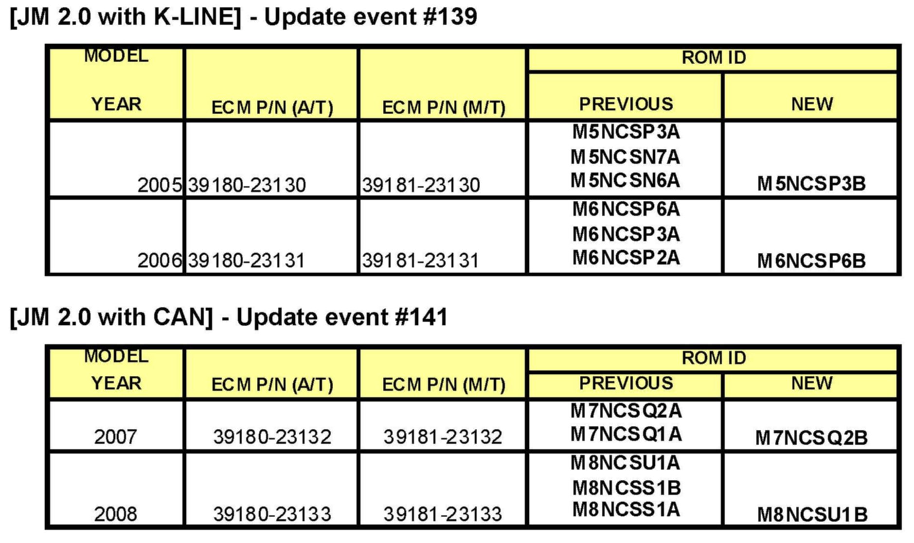 To verify the vehicle is affected, be sure to check the version of the vehicle's control unit ROM ID with reference to the ROM ID Information Table mentioned below before attempting to update the control unit software.