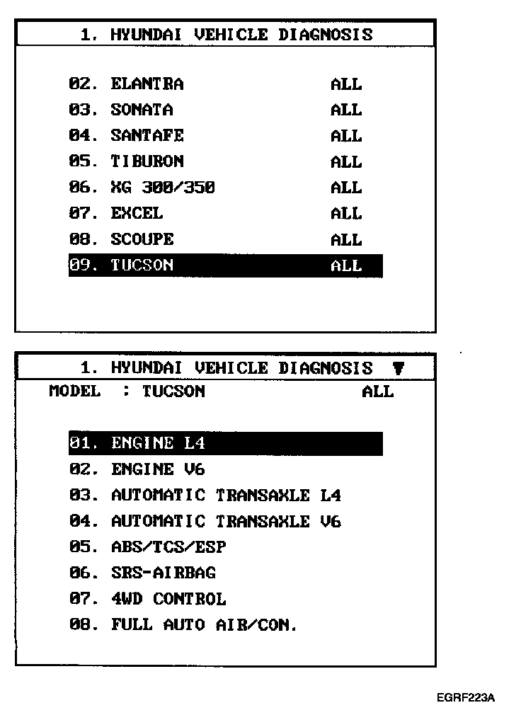 1. Select "Vehicle" and "Engine" (For example, TUCSON 2.0L L4).