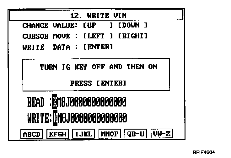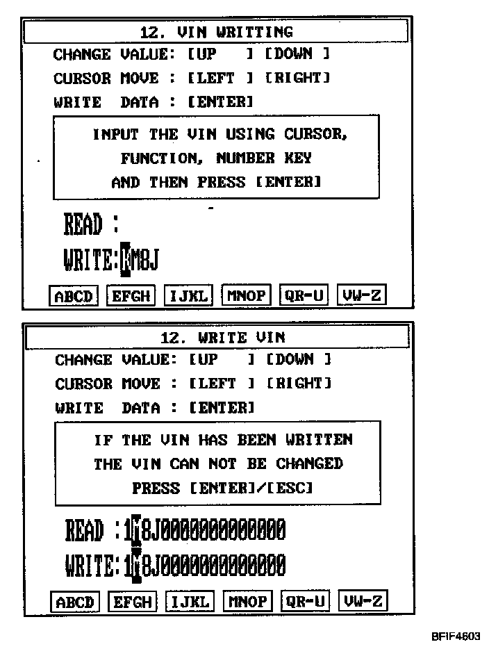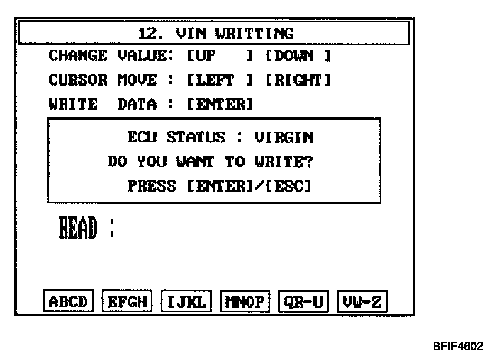 CAUTION: The programmed VIN cannot be changed. When writing the VIN, confirm the VIN carefully.