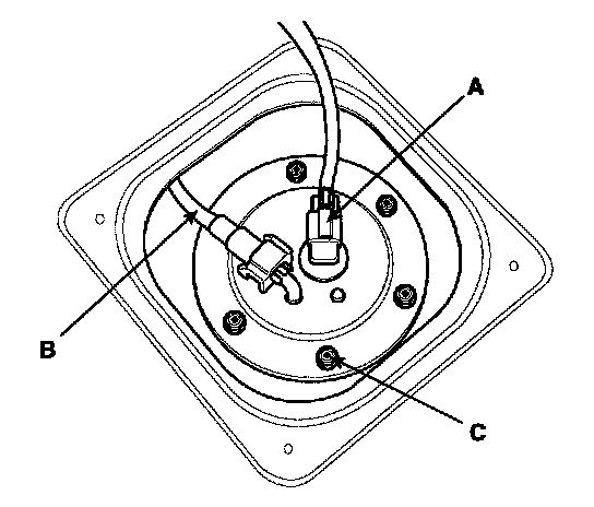 6. Remove the sub fuel sender plate mounting bolt (C).