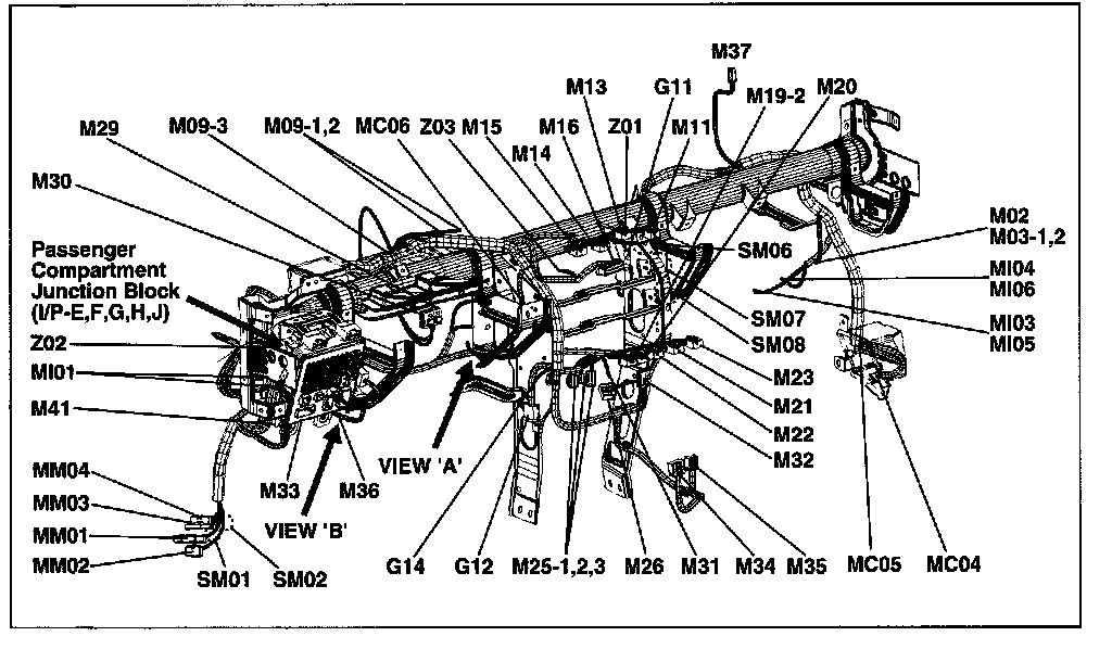 A junction block identification symbol consists of a wiring harness location classification symbol corresponding to a wiring harness location and number corresponding to the connector in the junction block.