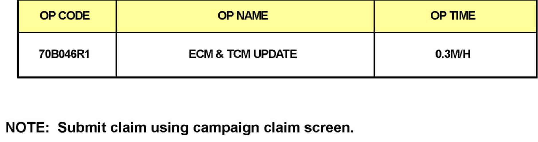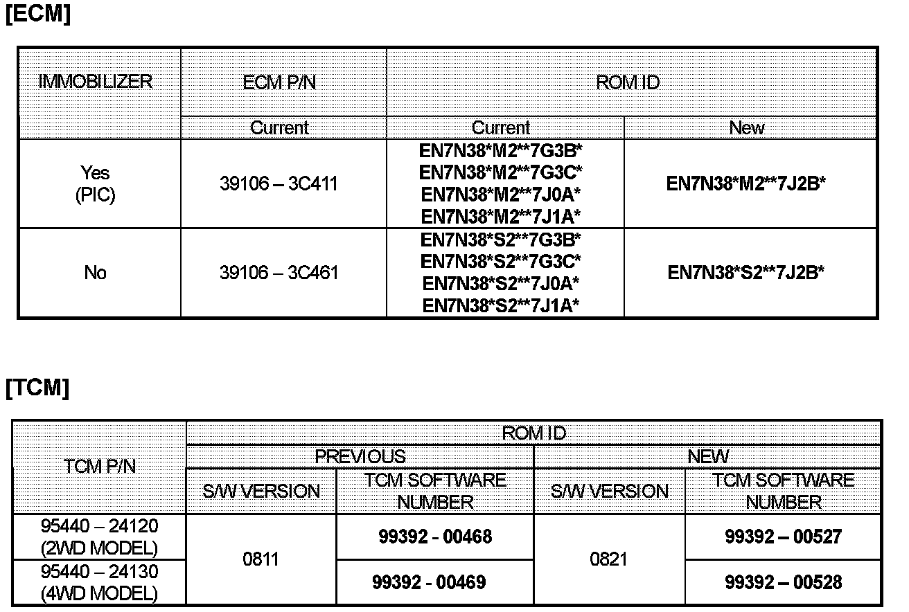 Verify the version of ECM & TCM ROM ID before attempting to update the vehicle's ECM & TCM software. Refer to ROM ID Information Table shown above.