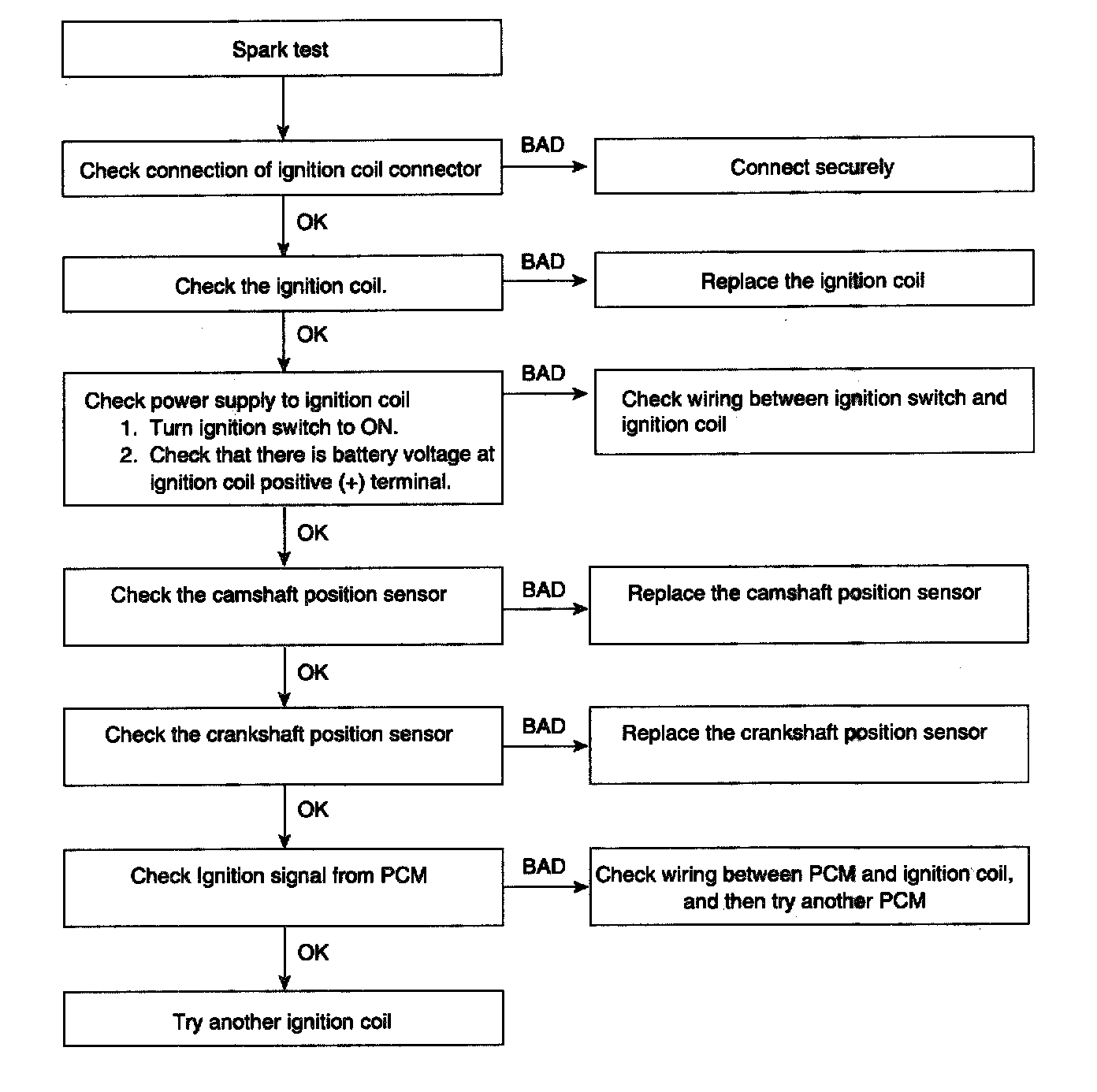6. Check if spark occurs while engine is being cranked.