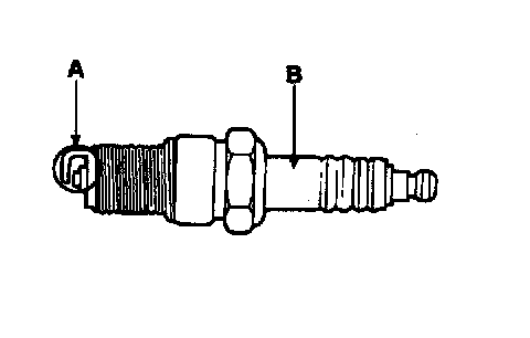 4. Inspect the electrodes (A) and ceramic insulator (B).