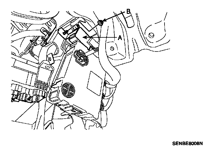 3. Disconnect the 5P connector of the SMARTRA unit and then remove the SMARTRA unit (A) mounted on the left side cowl cross bar. after loosening a shear bolt (B).