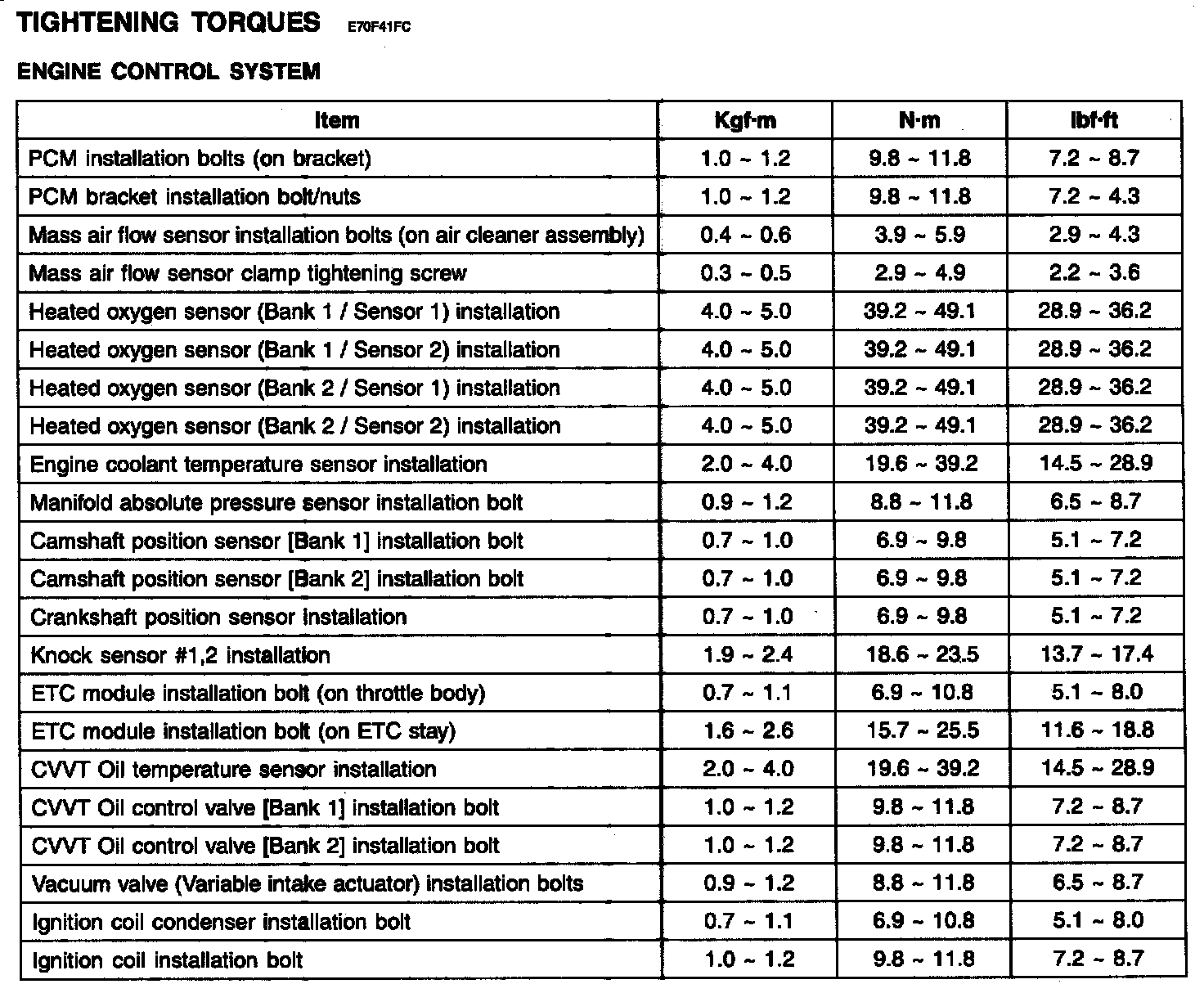 Tightening Torque - Engine Control System: