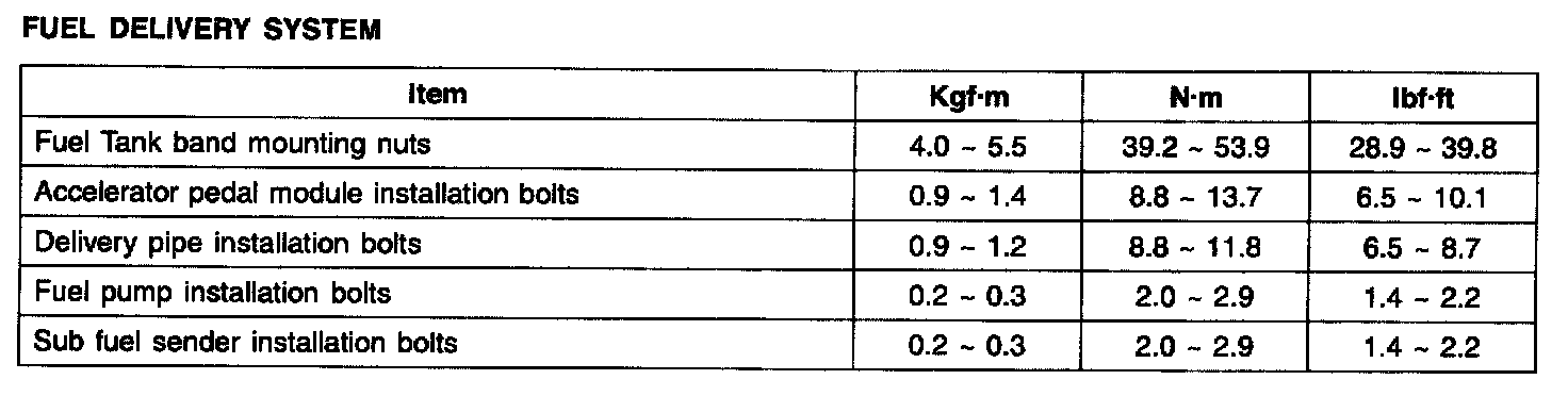 Tightening Torques - Fuel Delivery System: