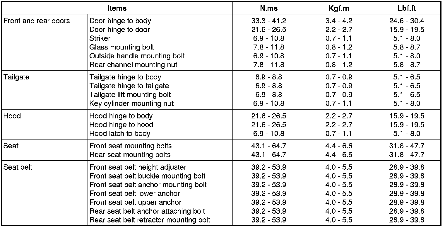Body and Frame: Specifications