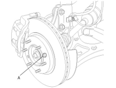 1. Remove the brake disc from hub using an M8 screw(A) if the brake disc has been seized with the hub due to corrosion or overheating.