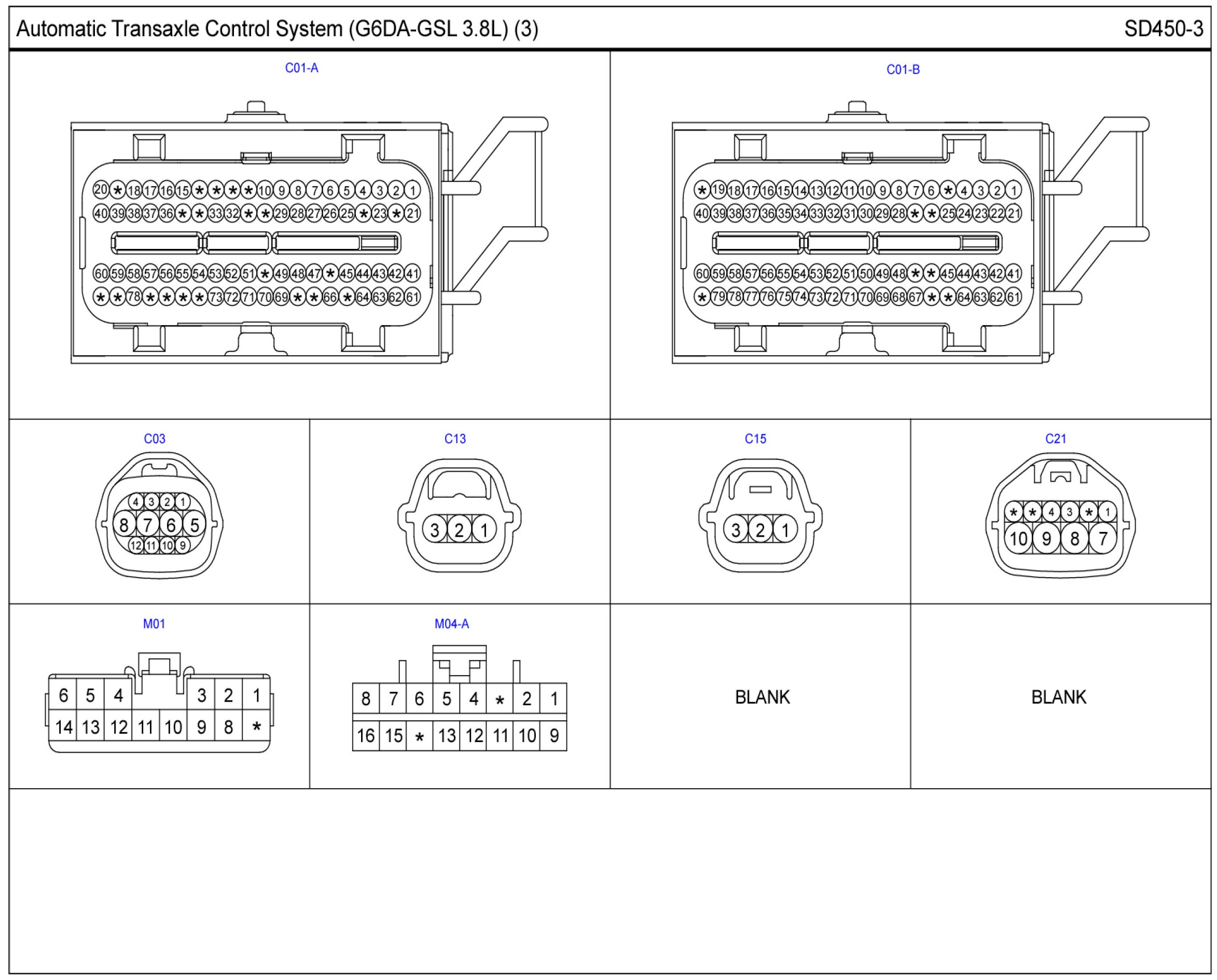 Automatic Transaxle Control System Connector Pin Outs: