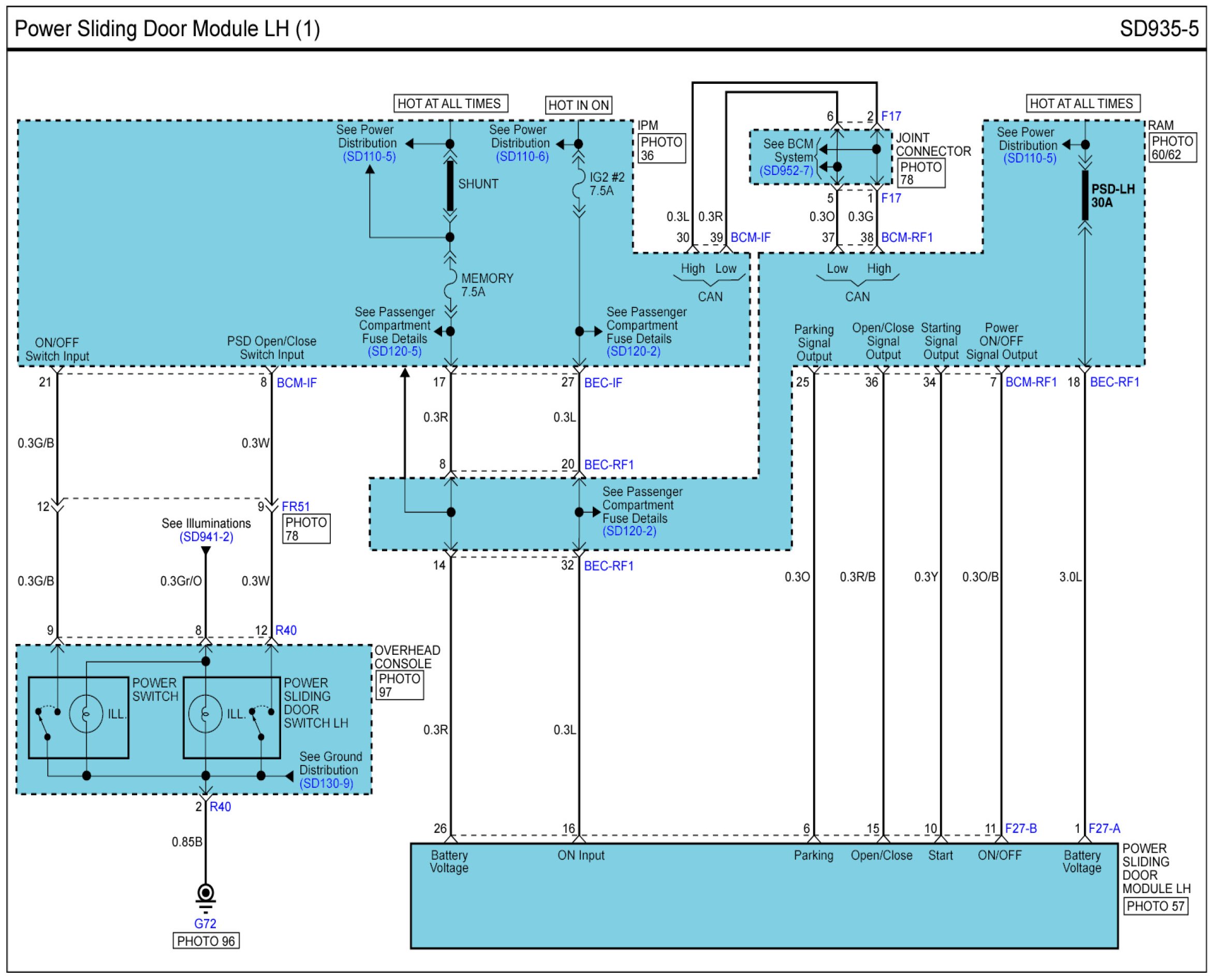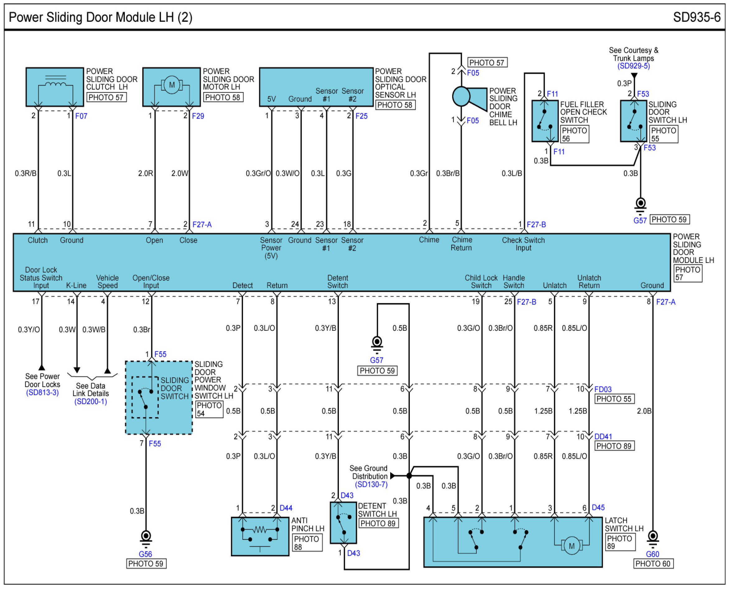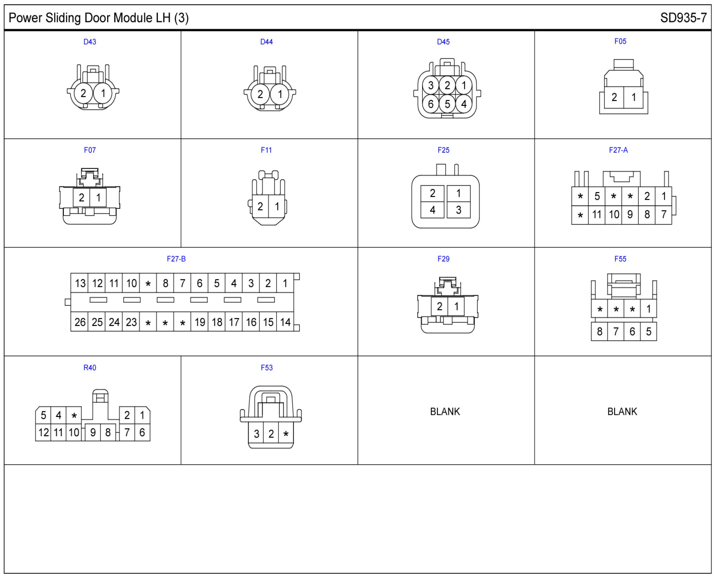 Power Sliding Door Module LH Connector Pin Outs: