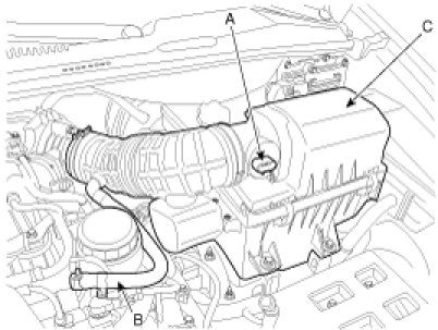 (3) Remove the intake air hose and air cleaner assembly(C).
