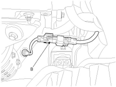 7. Disconnect the RH and LH oxygen sensor connectors(A, B).