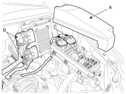 (1) Remove the engine room fuse and relay box cover(A).