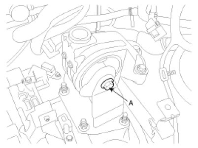 27. Remove the transaxle insulator mounting bolt(A).