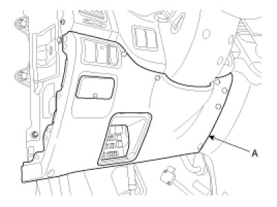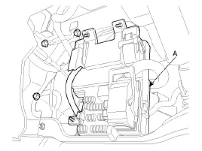 3. Remove the keyless antenna cable and IPM(Instrument Panel Module)(A) after loosening 3 nuts and disconnecting 5 connectors.