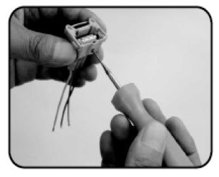 2. Insert each wire into the opposite ends of the inline solder and crimp using wire stripper.