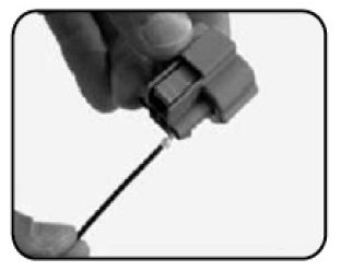 2. Ensure that the tip of the tool is inserted into the gap between the elastic arm of key and terminal.
