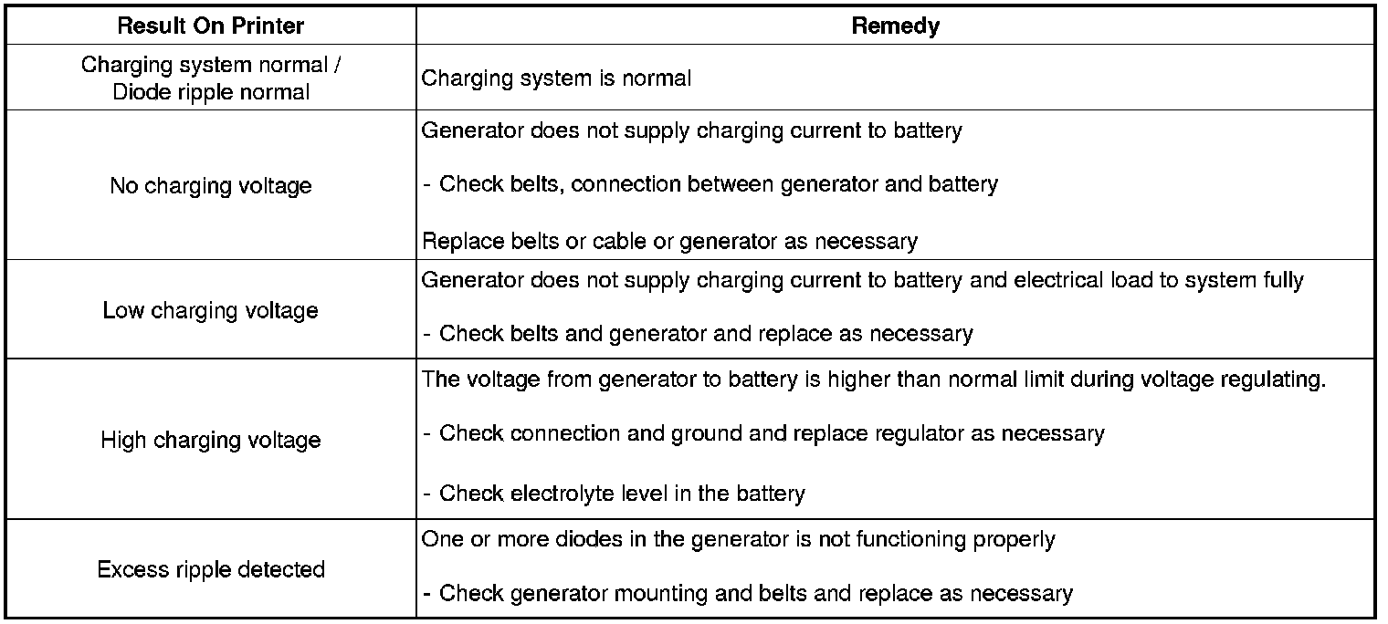 6. The MICRO 570 will detect the amount of ripple from the charging system to the battery. Excessive ripple usually means the stator is damaged or that one or more generator diodes have failed.