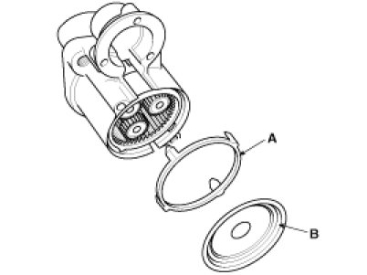 9. Press the stop ring (A) using a socket (B).