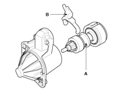 1. Disconnect the M-terminal (A) on the magnet switch assembly (B).