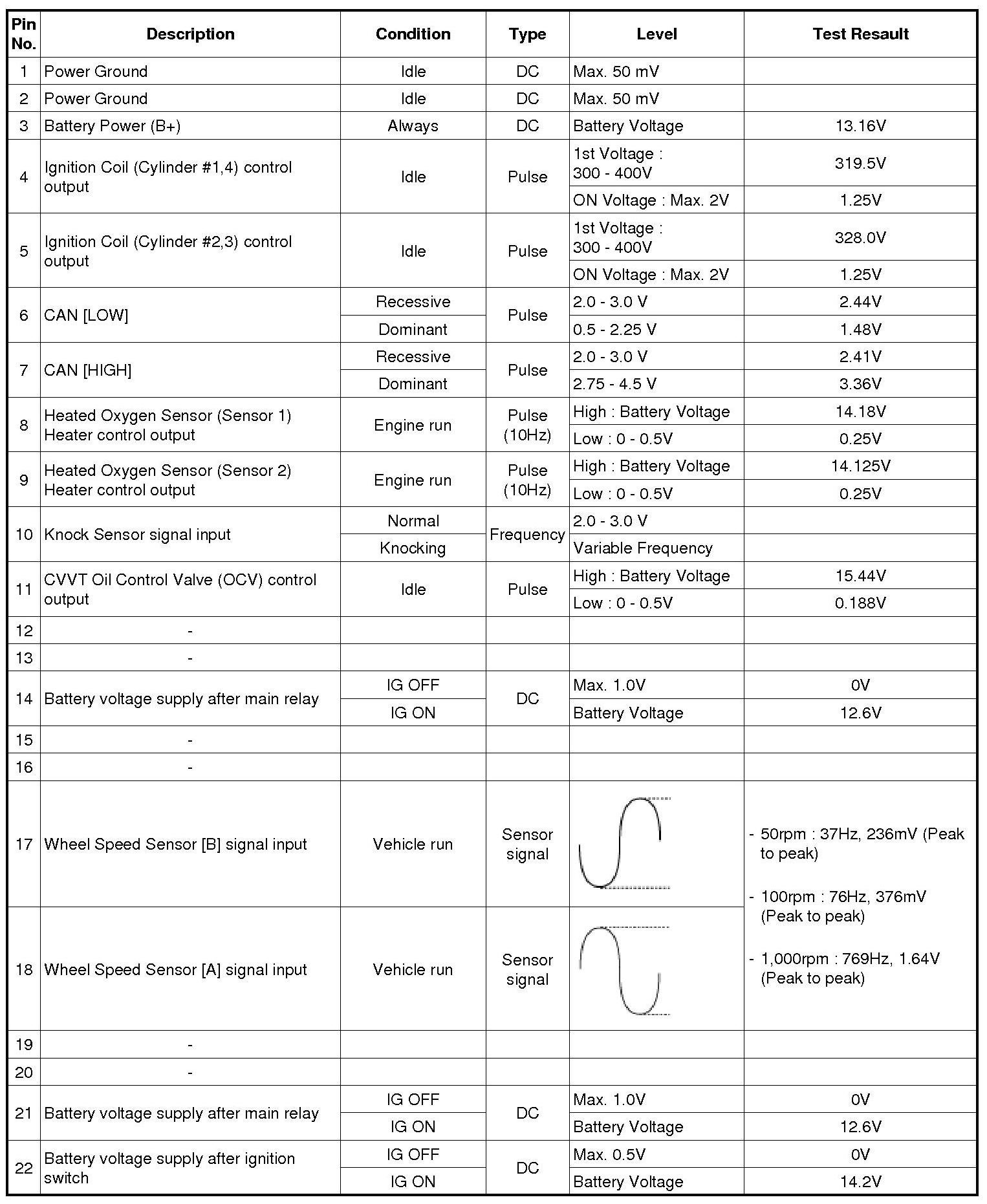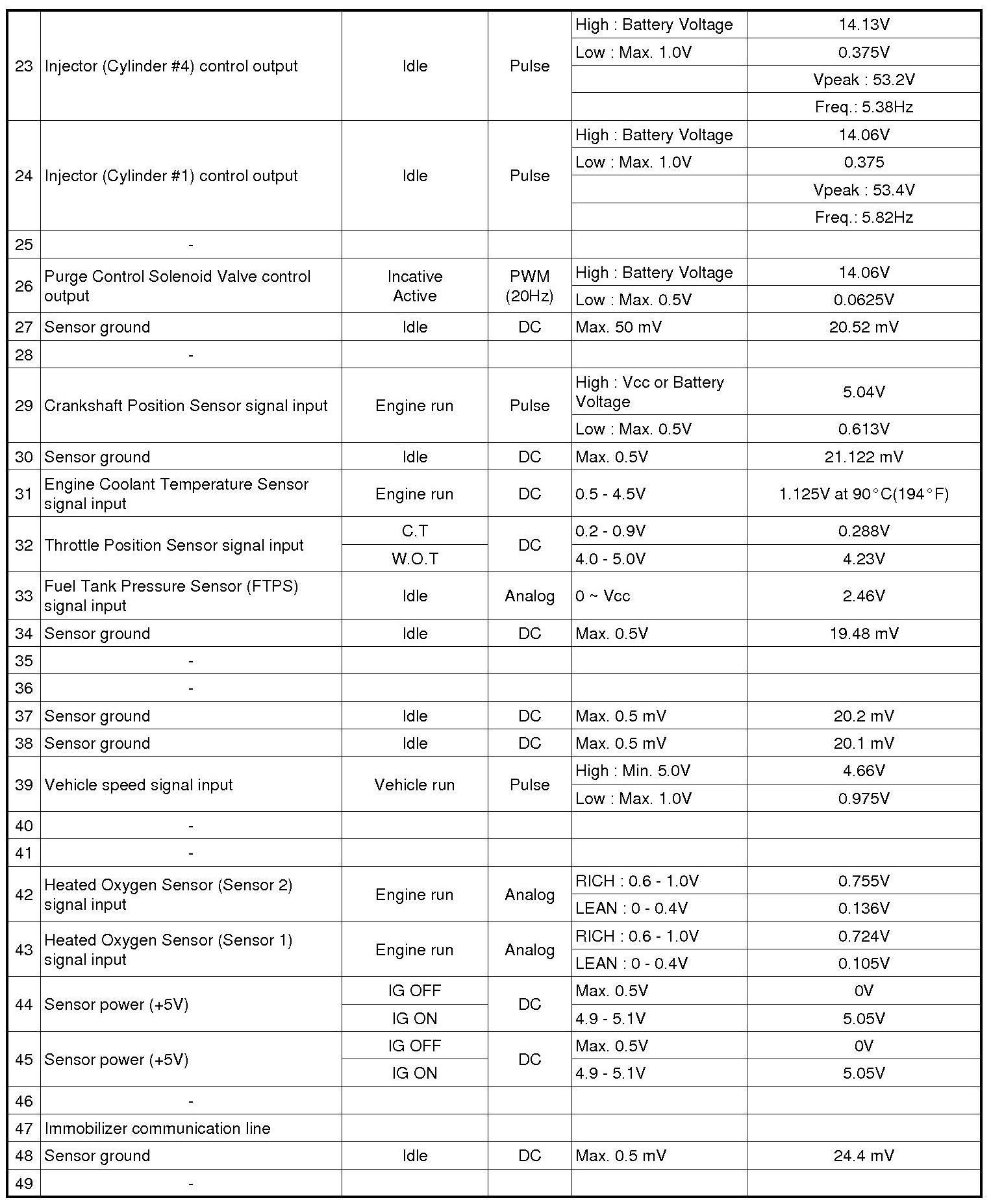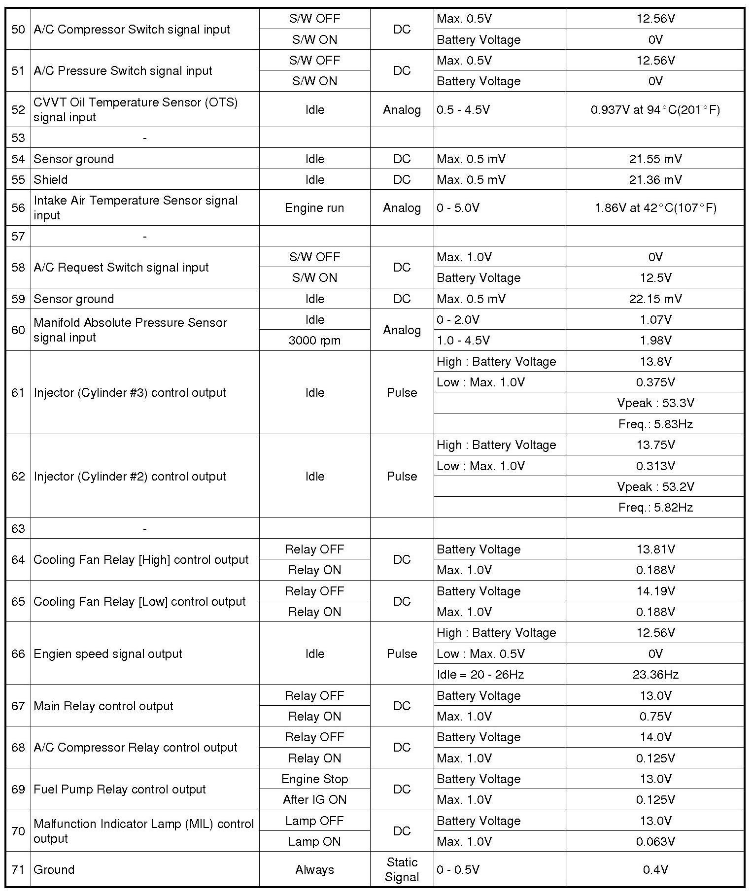 ECM Terminal And Input/Output signal