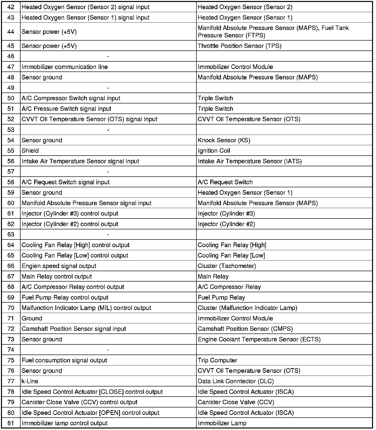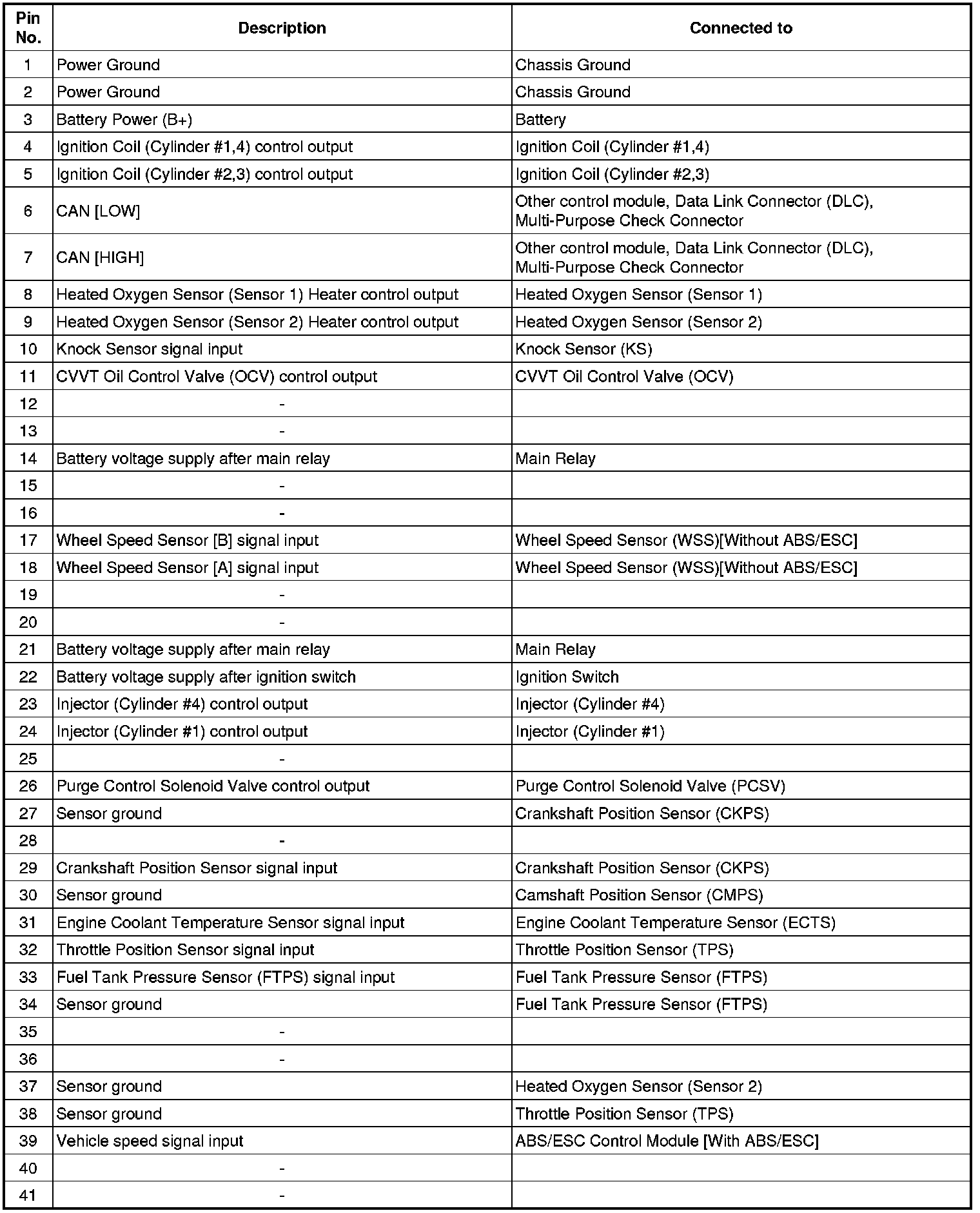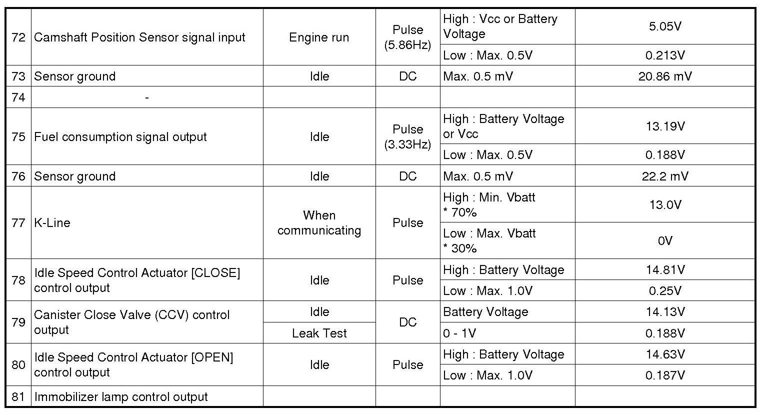 ECM Terminal And Input/Output signal