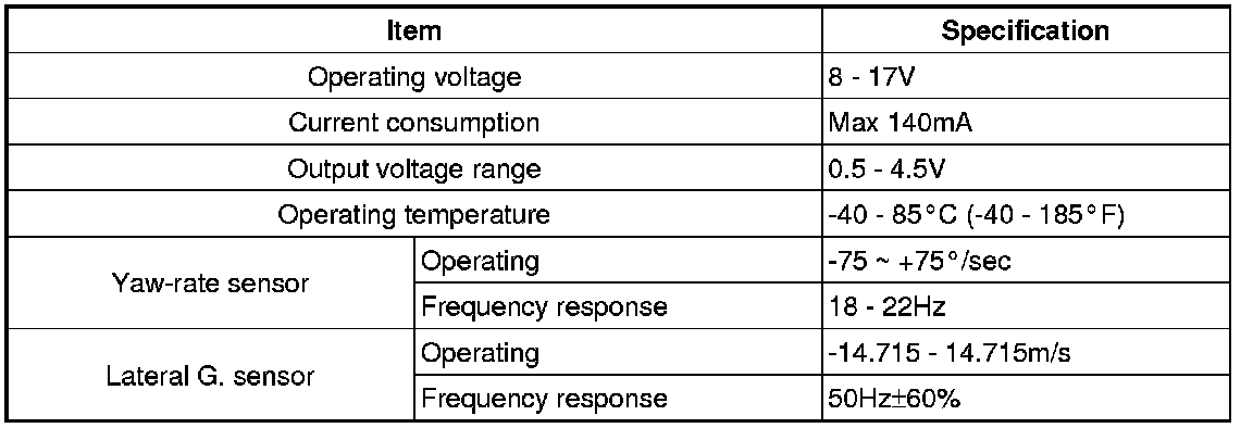 Lateral Accelerometer: Specifications
