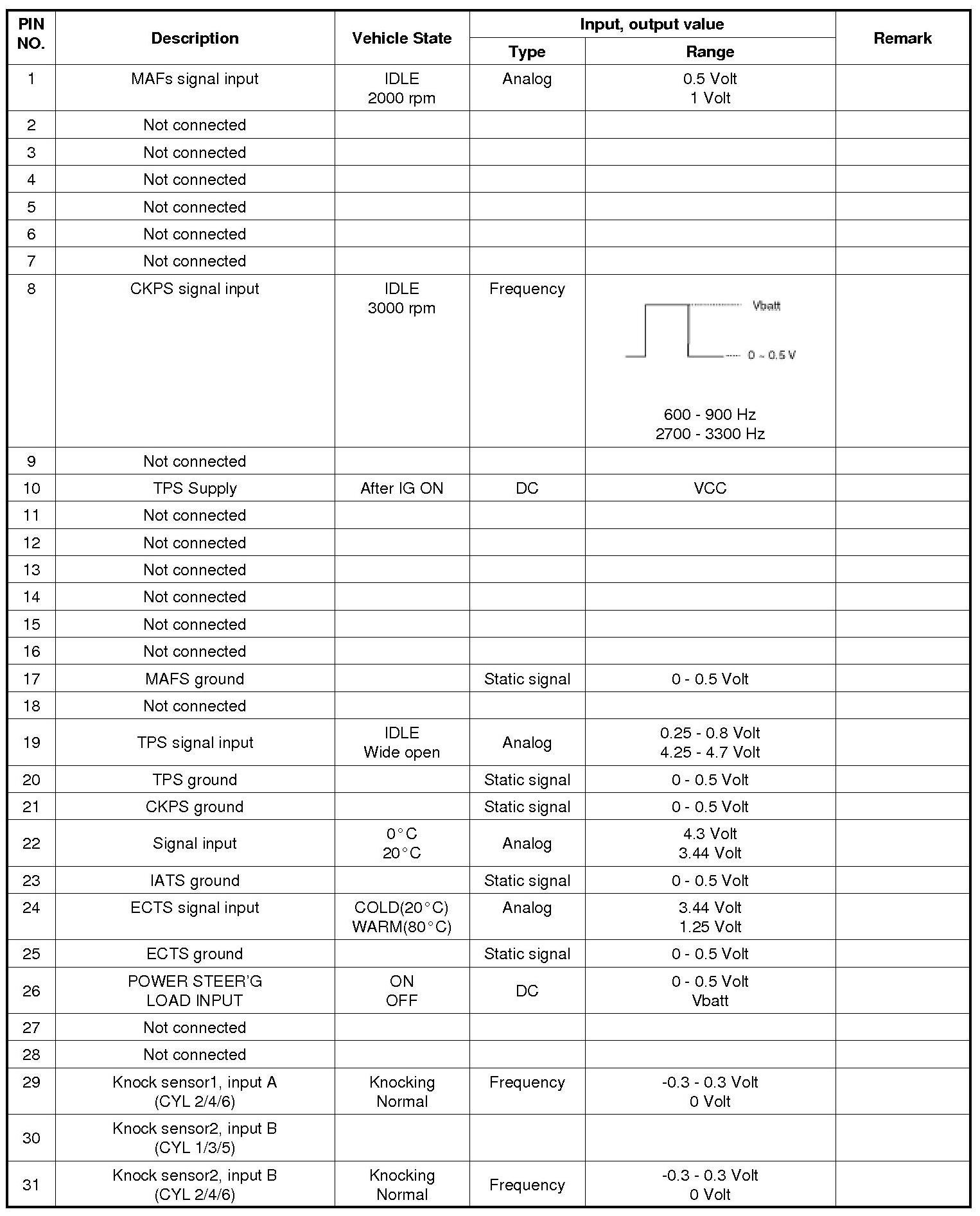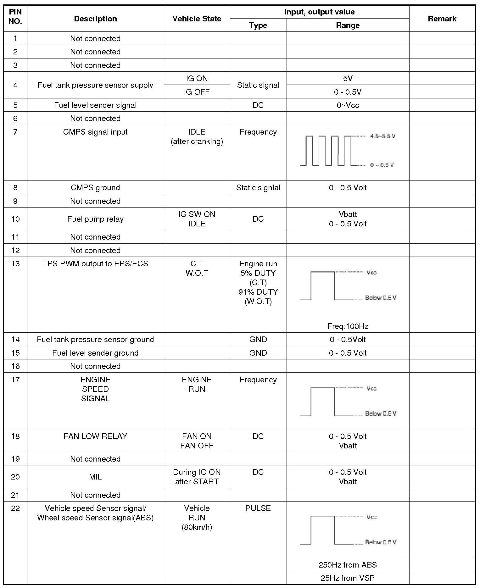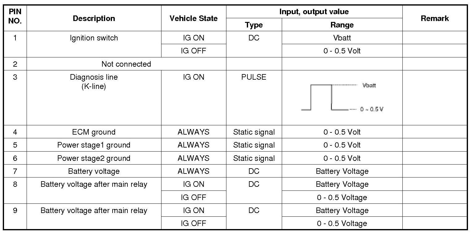3. ECM Terminal Input/output Signal