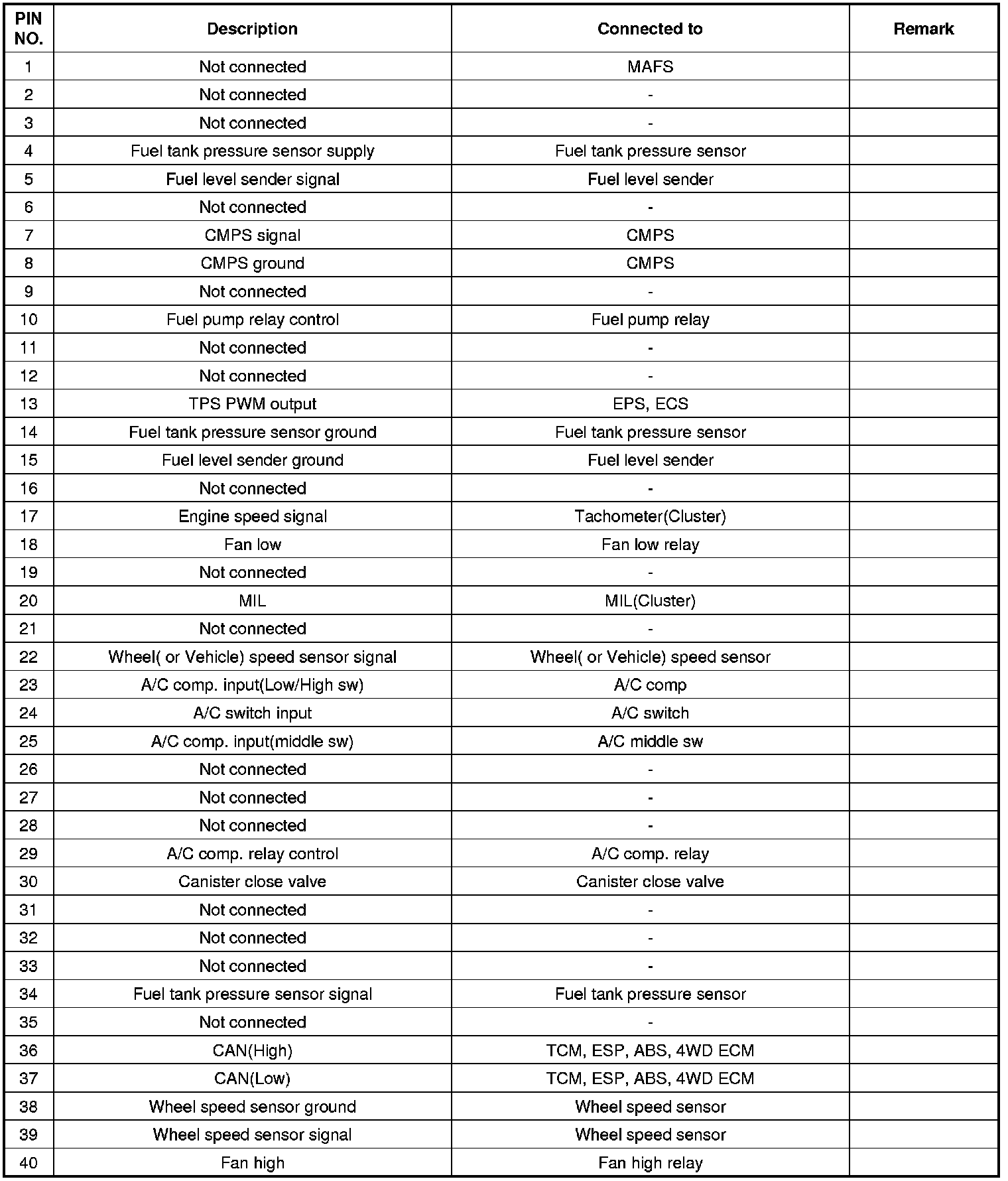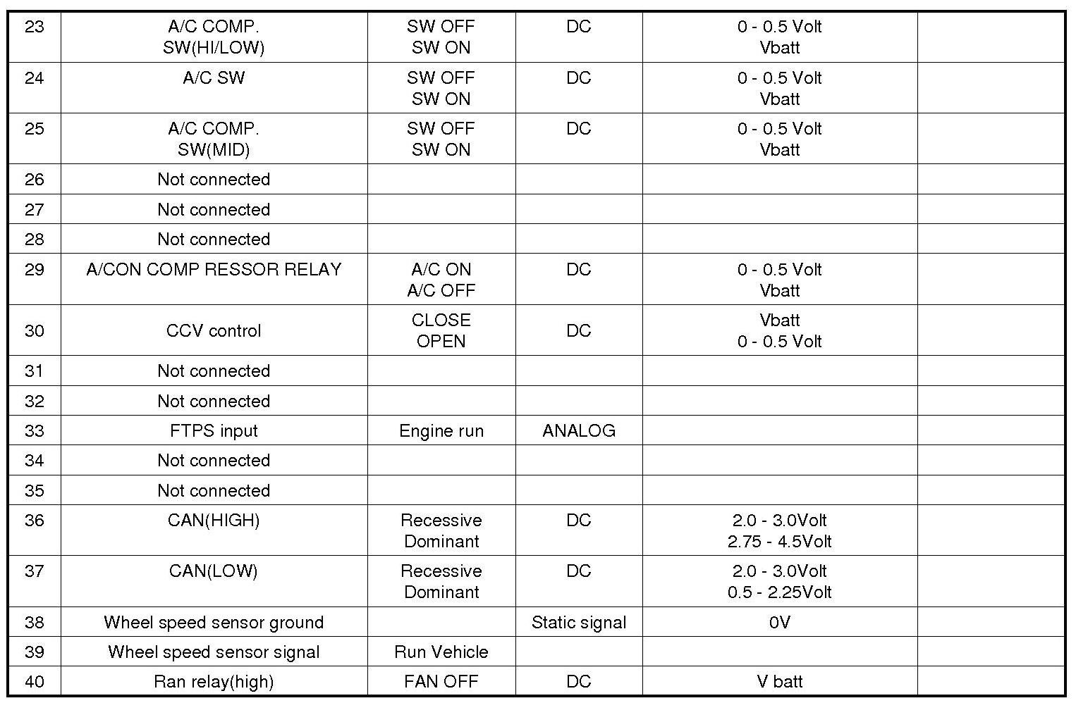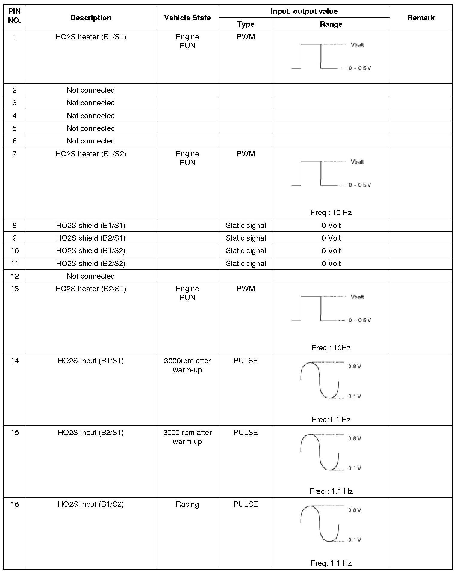 3. ECM Terminal Input/output Signal