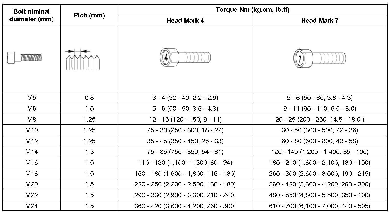 Tightening Torque Table of Standard Parts