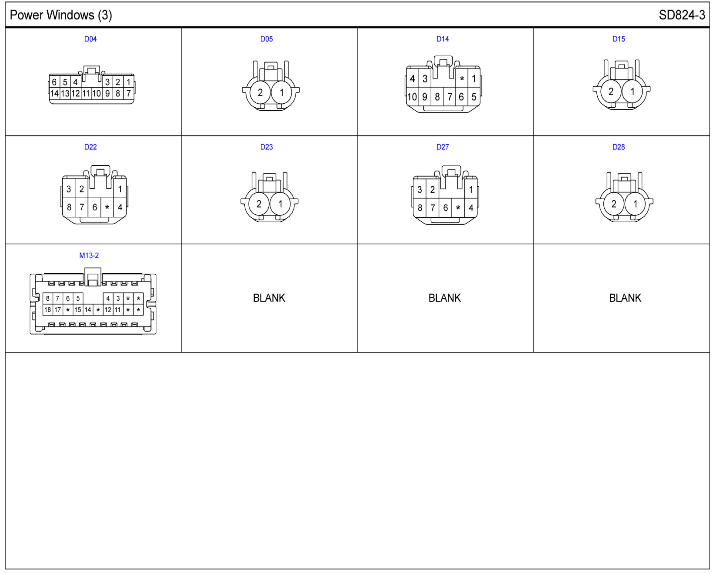 Power Windows Connector Pin Outs: