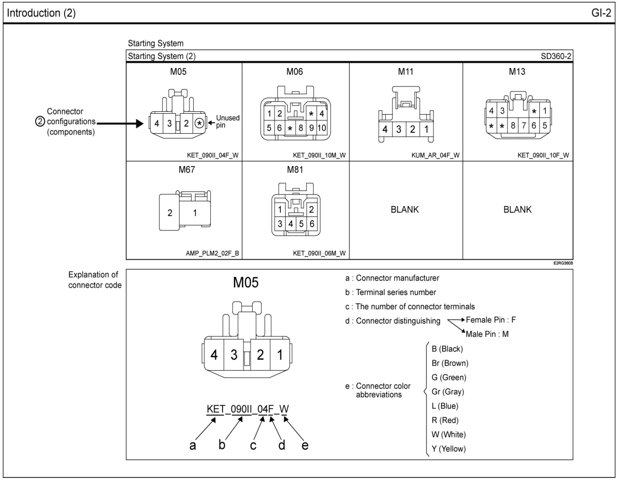 - It shows the front of the connector on the harness side when not to the harness connector. The terminal number on each connector can be obtained by following the pattern used in (5) connector view and numbering order. Unused terminals are marked with an asterisk (*).