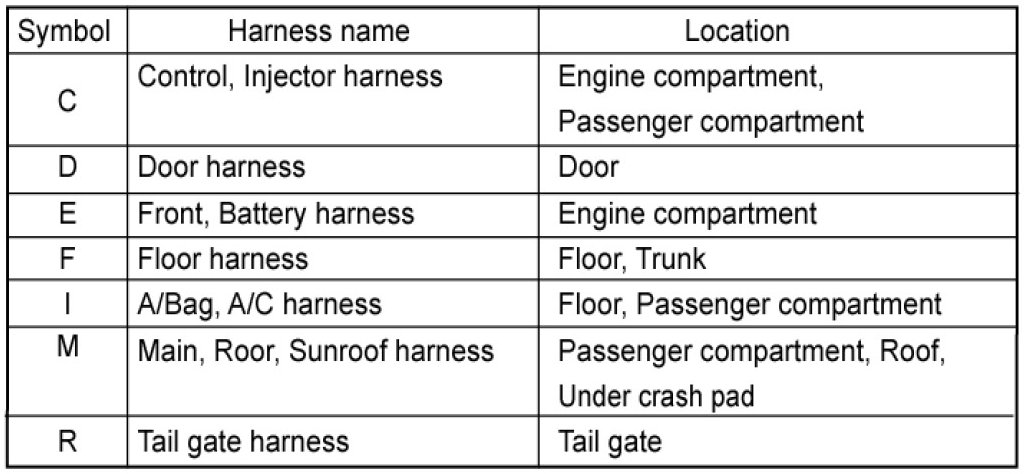 * It depends on vehicles, it is necessary to check the harness name symbol on the harness layouts for detailed symbol.