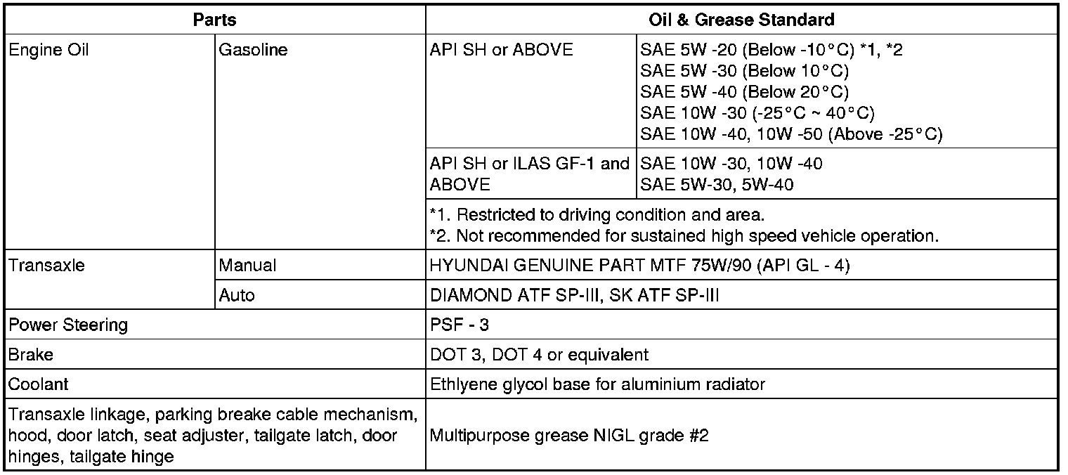 Using any other type of parts and fluid can cause serious damaged if the vehicle.RECOMMENDED LUBRICANTS