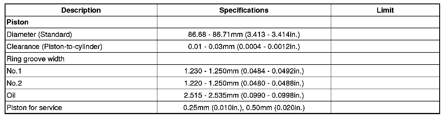Piston Dimensions and Clearances
