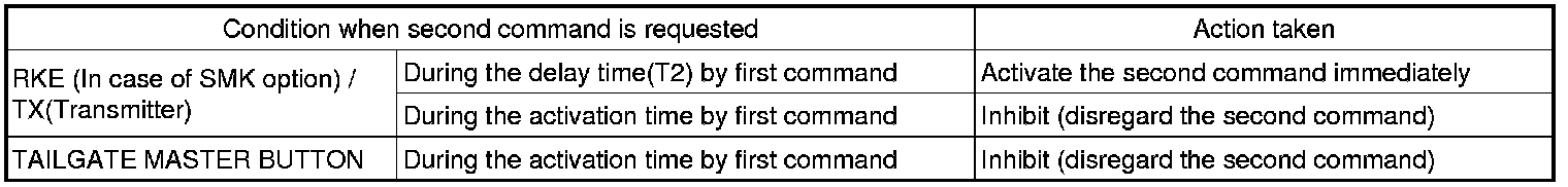 When another input of RKE TAILGATE comes in during the TAILGATE TIMER (30 sec.), it is ignored.